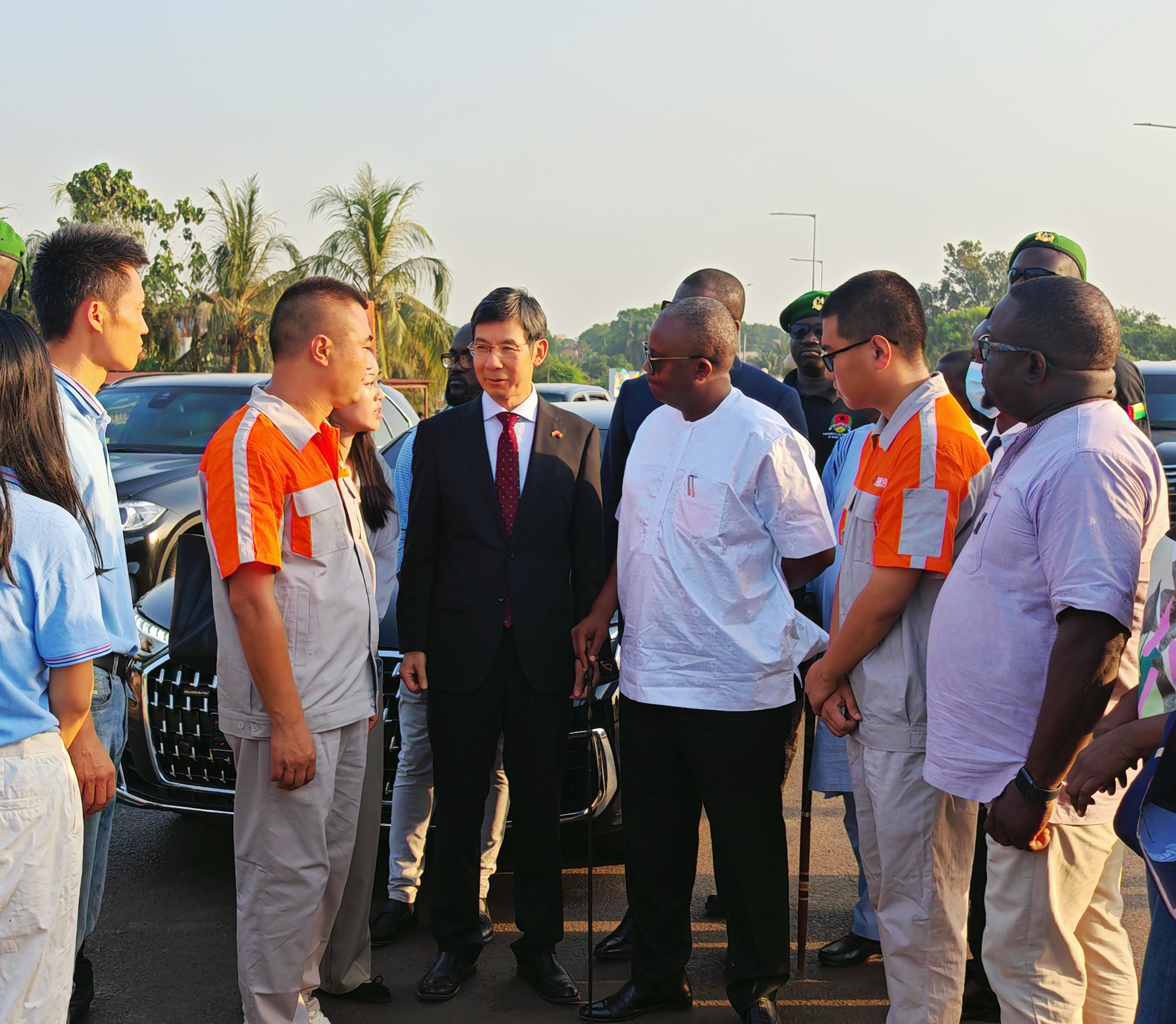 驻几内亚比绍大使杨仁火陪同几比总统恩巴洛视察中国援几比西非沿海公路项目