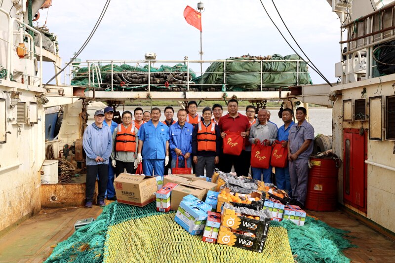 2026年1月7日,驻几内亚比绍大使杨仁火登上在几比海域作业的中水公司渔船,看望慰问船员,送上“温暖迎春”暖心包和慰问品。援几比医疗队随行,为船员提供医疗咨询。